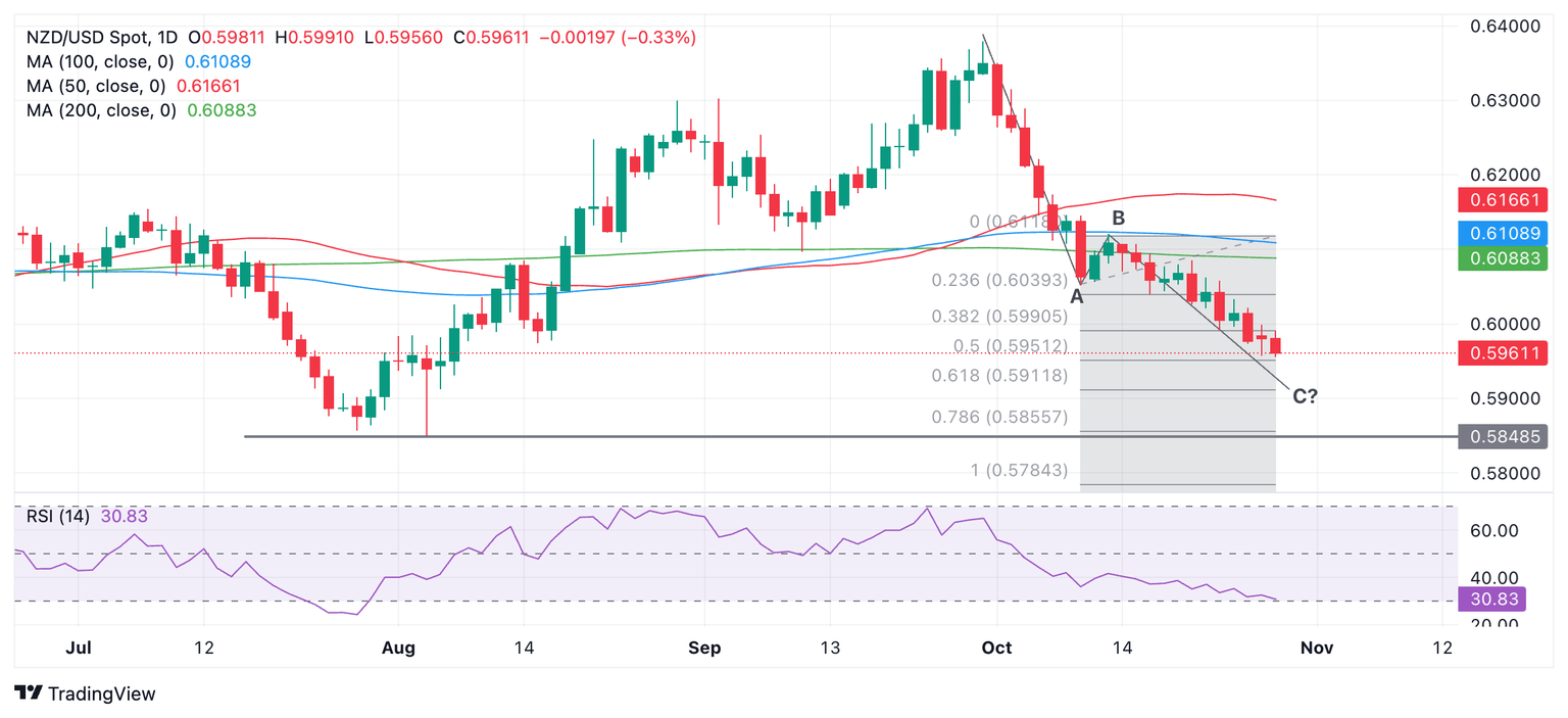 NZD/USD Price Forecast: Falling in possible C wave of bearish pattern