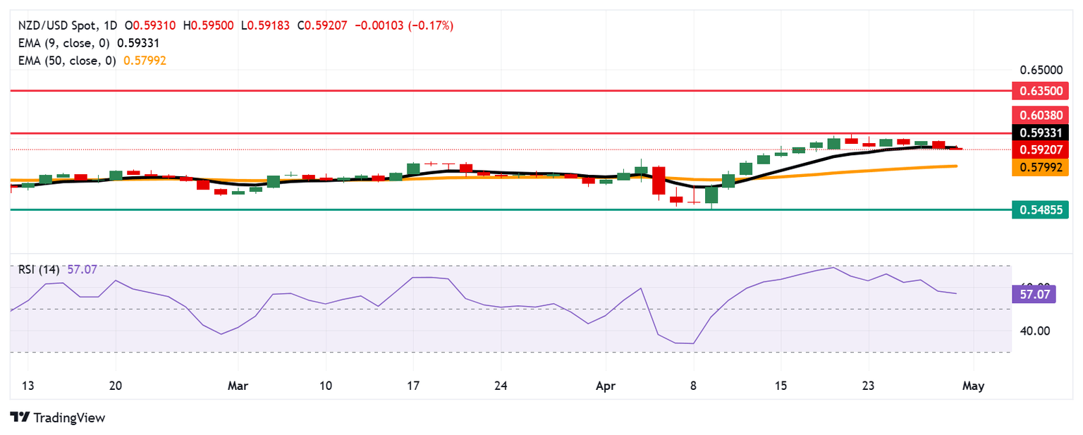 - NZD/USD may challenge the psychological resistance at 0.5950, with potential to extend gains toward the six-month high of 0.6038.