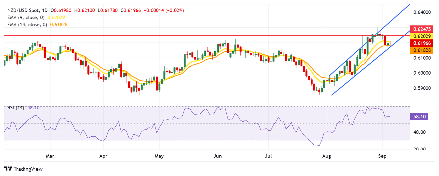 NZD/USD Price Forecast: Tests barrier at nine-day EMA near 0.6200