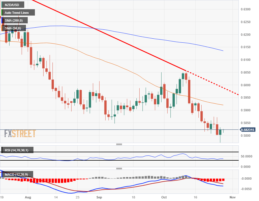 The NZD/USD set a fresh low of 0.5772 for 2023, the pair's lowest bid since November of last year. After chalking in a new yearly low, the Kiwi (NZD) caught a much-needed rebound and heads into the Friday Asia market session trading near 0.5820.