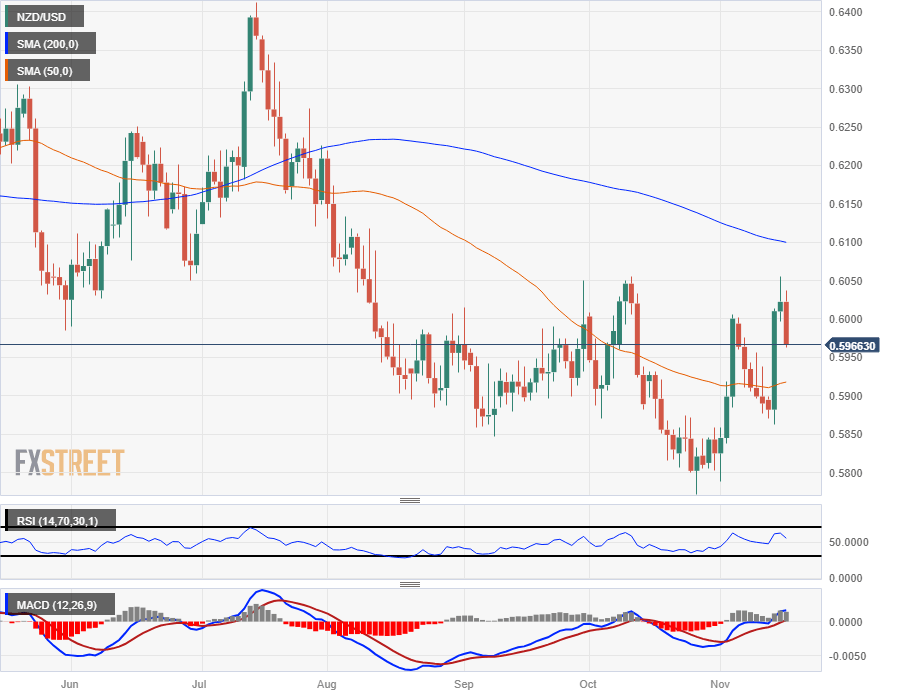 The Kiwi's pullback below the 0.6000 handle leaves the NZD/USD exposed to further downside, with the pair at risk of getting pulled back through the 50-day Simple Moving Average (SMA) and into the 0.5900 handle, with the last swing low sitting near 0.5860.