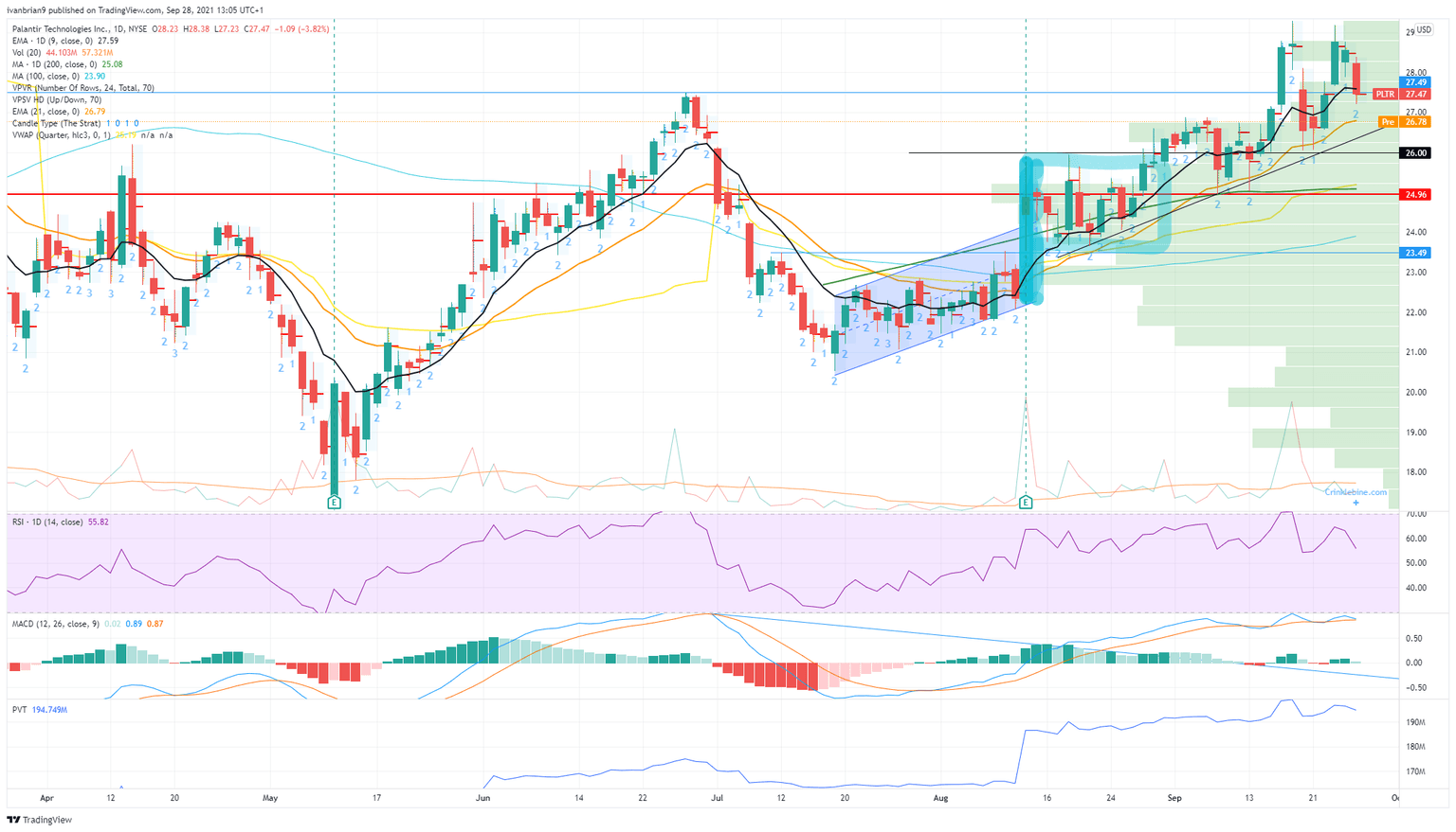 Update: NYSE:PLTR plunged on Tuesday to close the day at $25.34 per share, down 7.75% on the day. Wall Street suffered a sentiment sell-off, as market participants rushed into safety amid renewed fears of a slowing global economic comeback. Bottlenecks and disruptions in the supply chains are the main issues that major economies face these days. All US indexes closed in the red, with the NYSE Composite losing 225 points or 1.36%.
