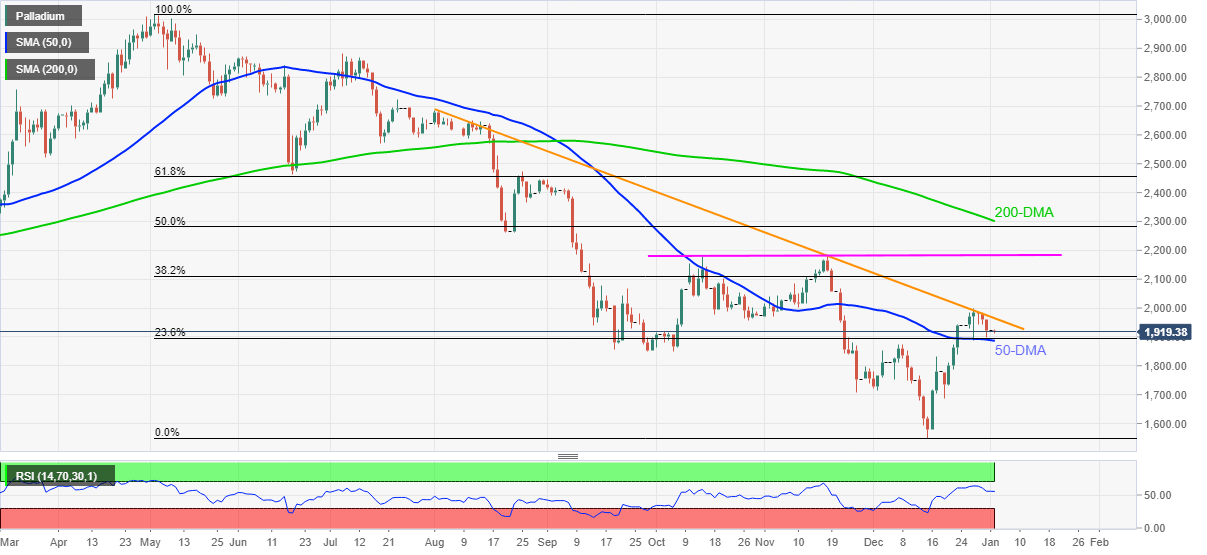 Palladium Price Analysis: XPD/USD bears aim for 50-DMA during four-day downtrend