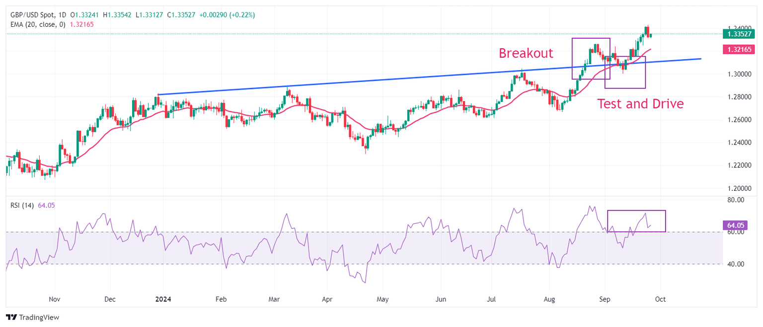 The Pound Sterling delivers a strong recovery move to near 1.3400 in North American trading hours against the US Dollar after correcting to near 1.3300 on Wednesday. The GBP/USD pair faced some selling pressure after posting a fresh more-than-two-year high at 1.3430. The near-term outlook of the Cable remains firm as the 20-day Exponential Moving Average (EMA) near 1.3216 is sloping higher.