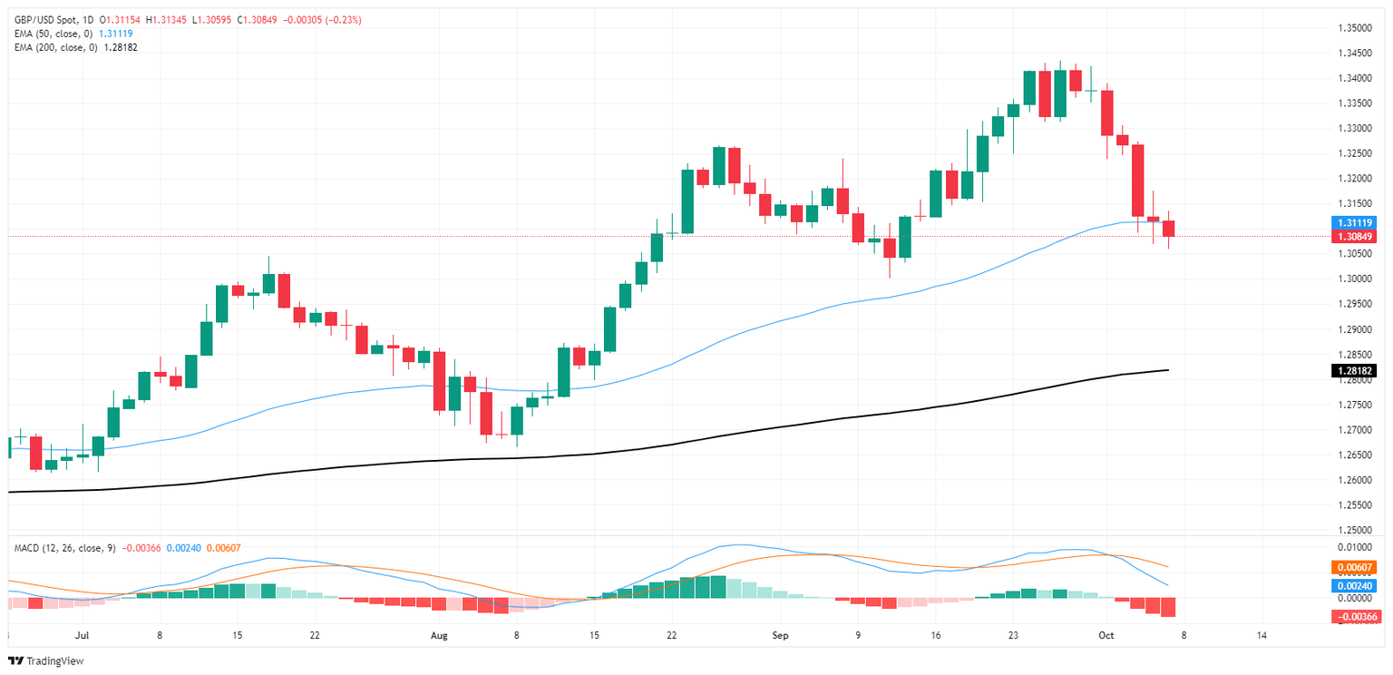 GBP/USD sunk another one-quarter of one percent on Monday, easing into a fresh four-week low and closing below the 1.3100 handle for the first time since mid-September. Investors rate cut hopes are buckling under the weight of a firmer-than-expected US labor market, and geopolitical tensions have kept trader risk appetite pinned.