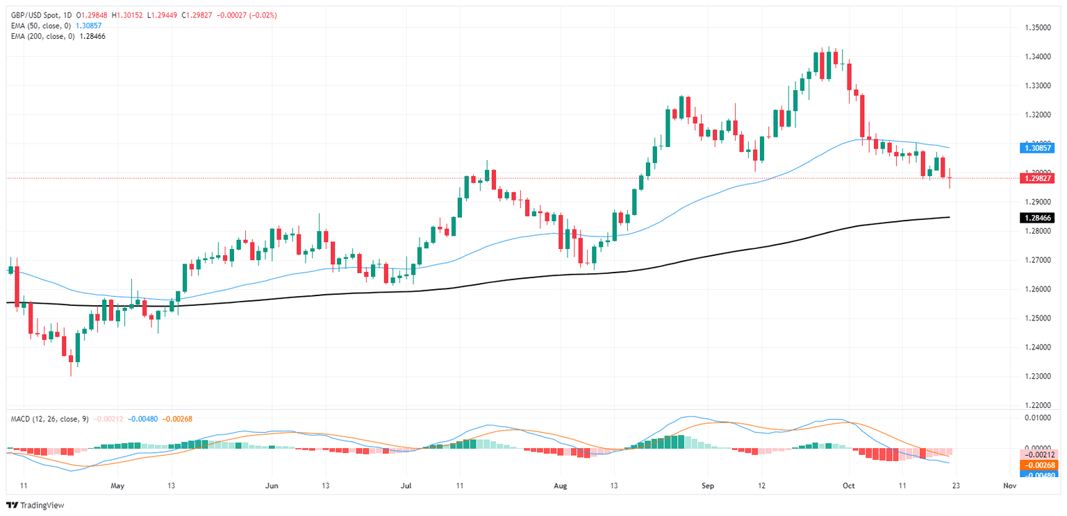 The Pound Sterling extended its losses against the US Dollar for two straight days, with sellers clearing the 1.3000 figure decisively, which could pave the way for further downside. At the time of writing, the GBP/USD trades at 1.2961, fluctuating around the 100-day moving average (DMA), down 0.15%.