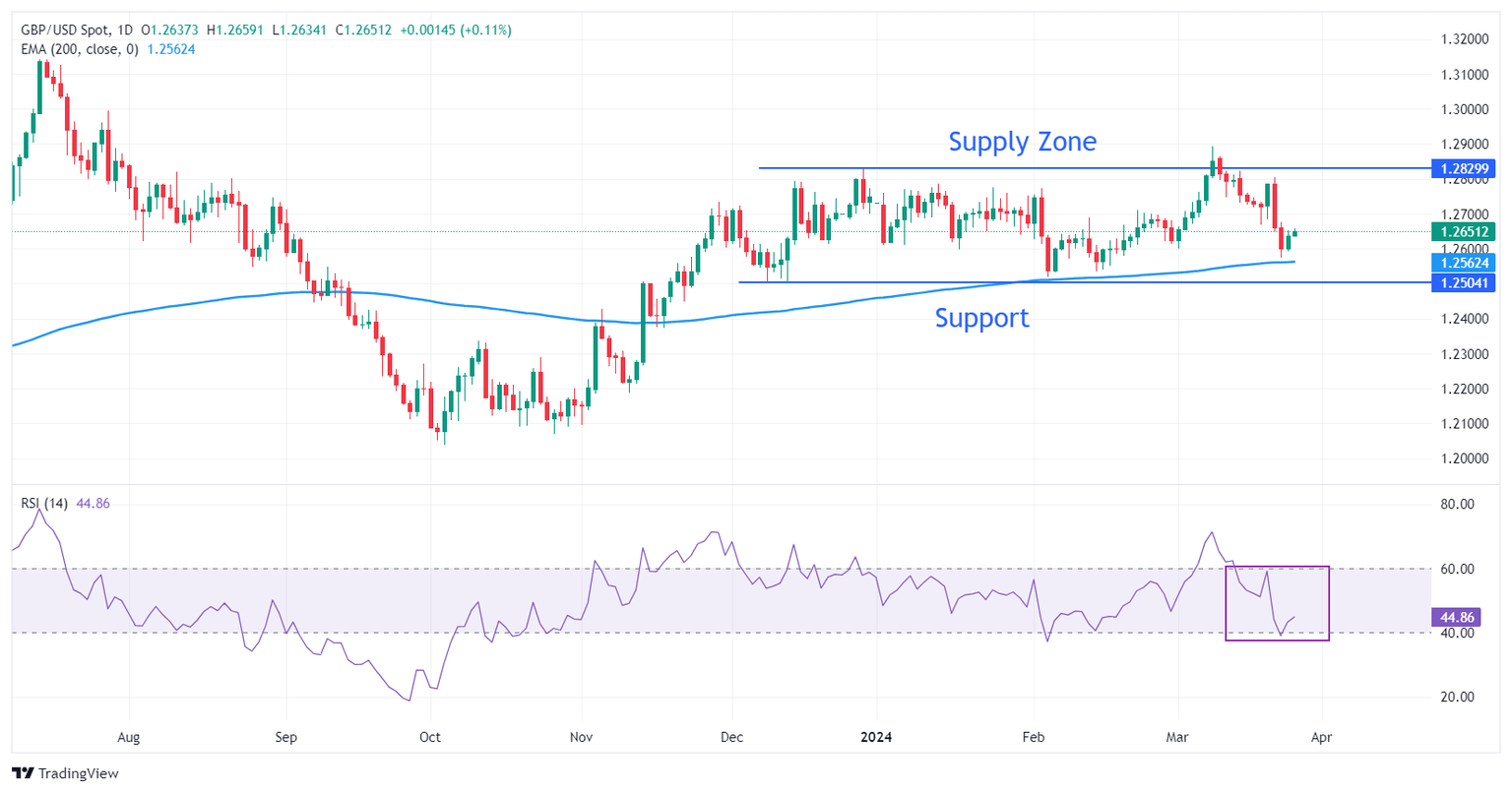 This week, the market sentiment will drive the Pound Sterling’s next move as the UK economic calendar is light. Investors will keenly focus on the United States core Personal Consumption Expenditure Price Index (PCE) data for February, which will be published on Good Friday. The annual Core PCE is forecasted to have grown at a steady pace of 2.8%.