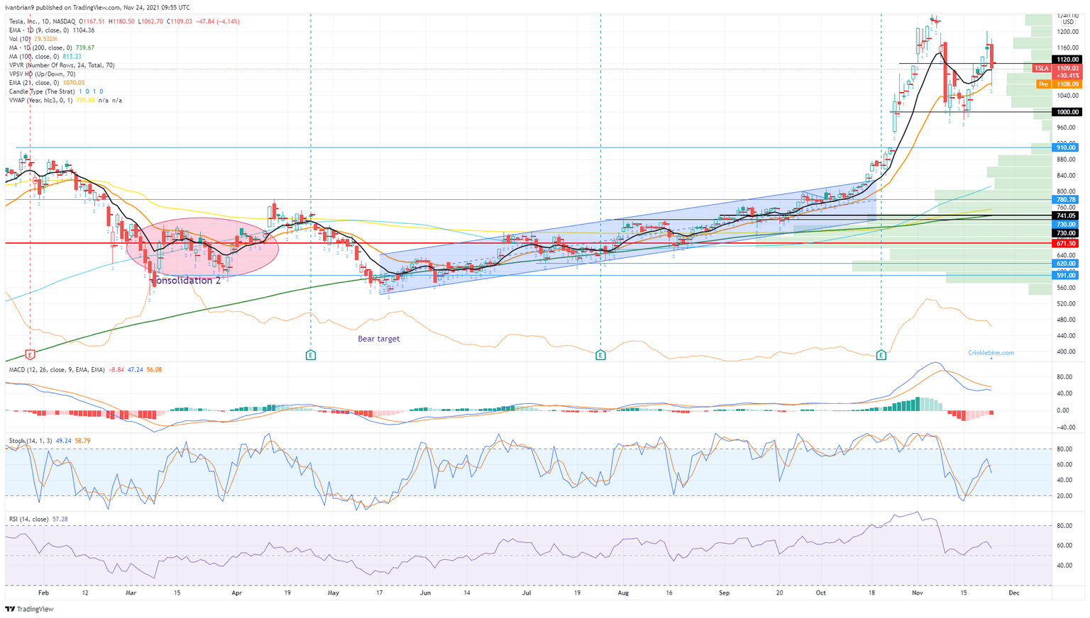 Rivian (RIVN) stock looks likely to break $100 today as a spate of nervousness hits equity markets ahead of the Thanksgiving break. No surprise that some profit-taking should be in evidence ahead of a possible long weekend for many. With such a strong rally, it has to be expected and may even set up things nicely for the usual Christmas rally in stock markets to close out one of the strongest years ever. Rivian stock is still well up from its IPO price of $78 but has seen many cashing in their chips and walking away from the table. The stock has dropped from a high of $179 to $120 in just four trading sessions. While yesterday was actually a reasonable performance given the negative market backdrop, we feel more selling pressure is likely for this one.