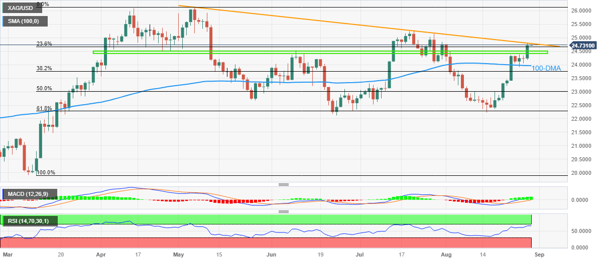 Silver Price Analysis: XAG/USD bulls need validation from $24.80 and US data