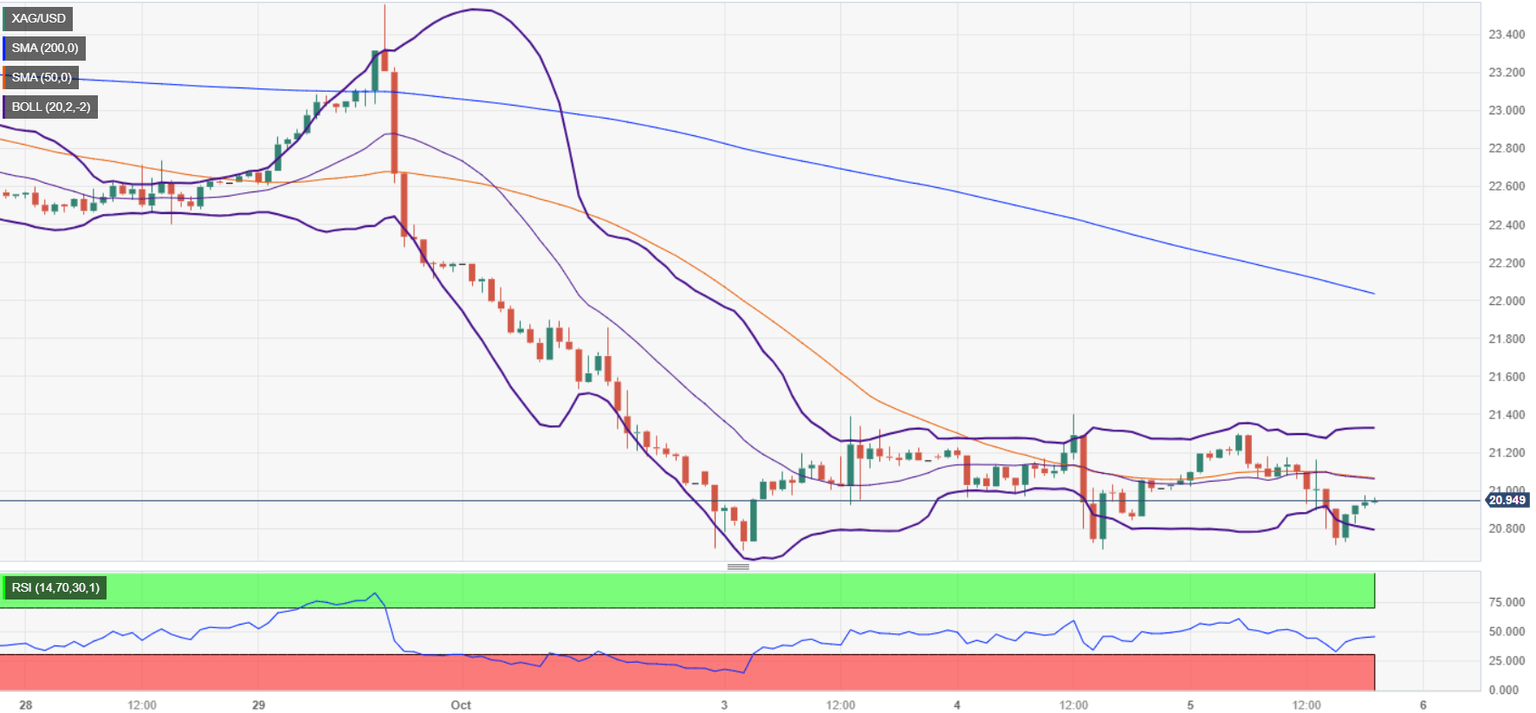 Silver price (XAG/USD) remains subdued late in the New York session, printing mild losses of 0.35%, below $21.00 per troy ounce after hitting a daily high of $21.29.