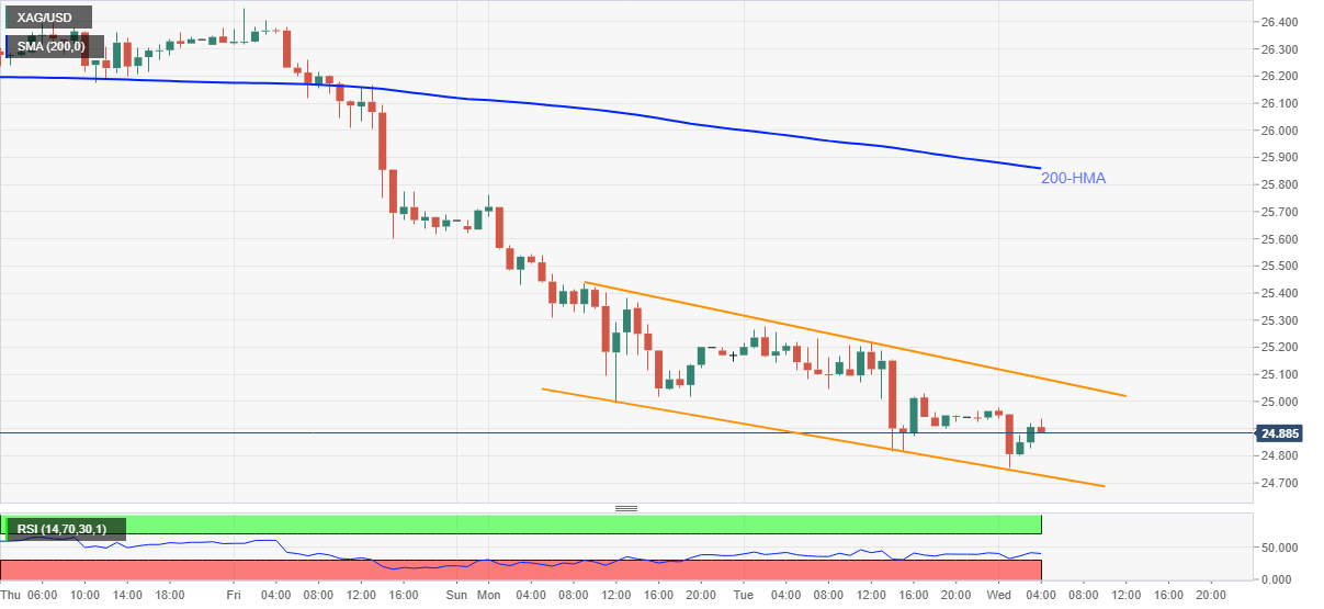 Silver (XAG/USD) remains pressured for the fourth consecutive day, despite a recent rebound to $24.90, amid early Wednesday.