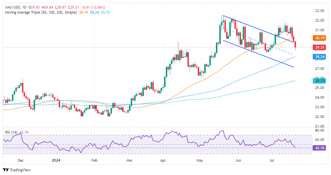 Silver Price Analysis: XAG/USD plummets more than 2% and drops below $29.50