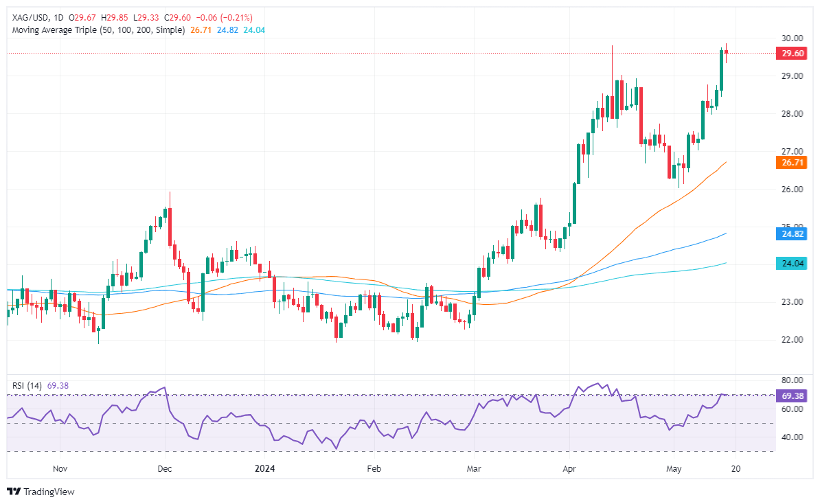 - Silver must stay above $29.00 to challenge the YTD high of $29.79 and further resistance levels at $32.15 and $35.40.