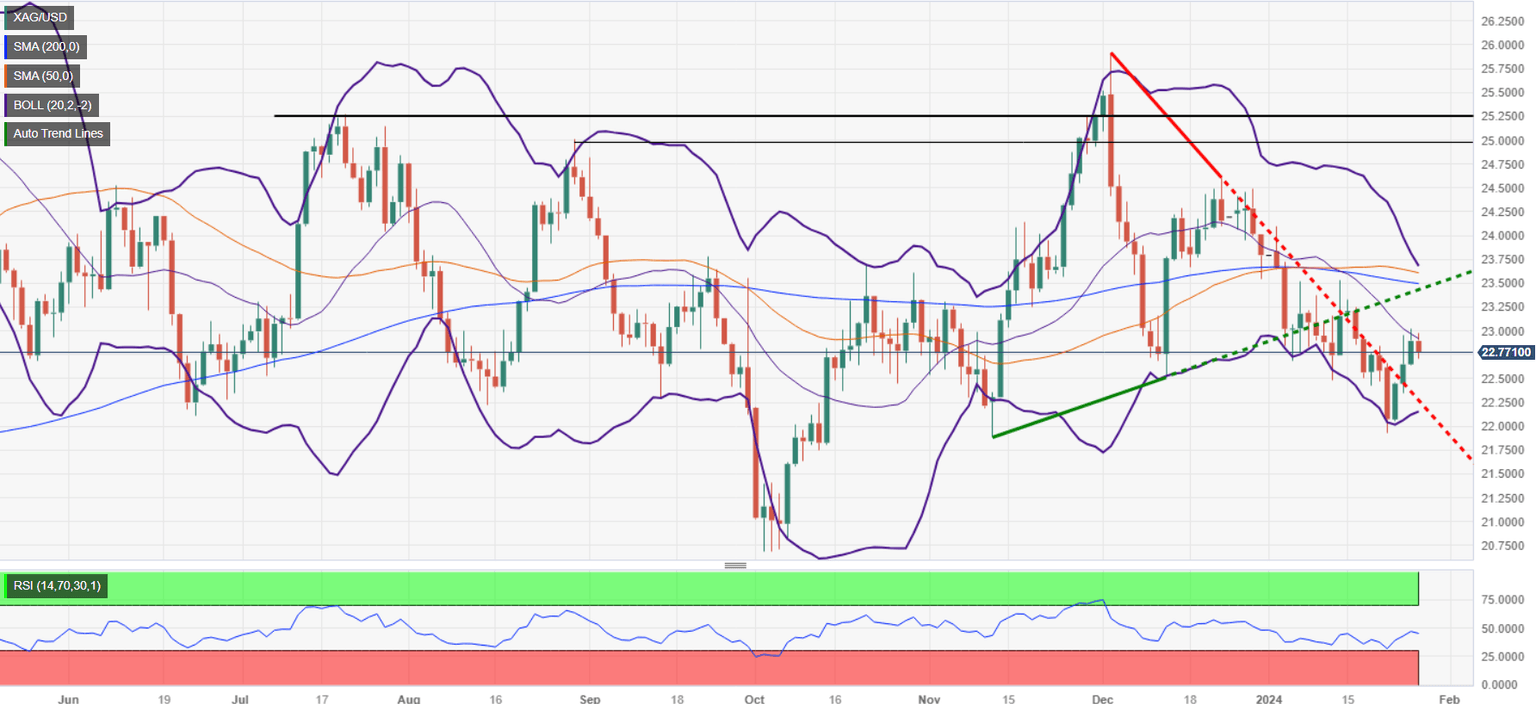 On the flip side, buyers are eyeing the $23.00 handle and the 100-DMA at $23.15 as immediate resistance levels in the near term. Once those levels are cleared, the next resistance emerges at the 200-DMA at $23.48.