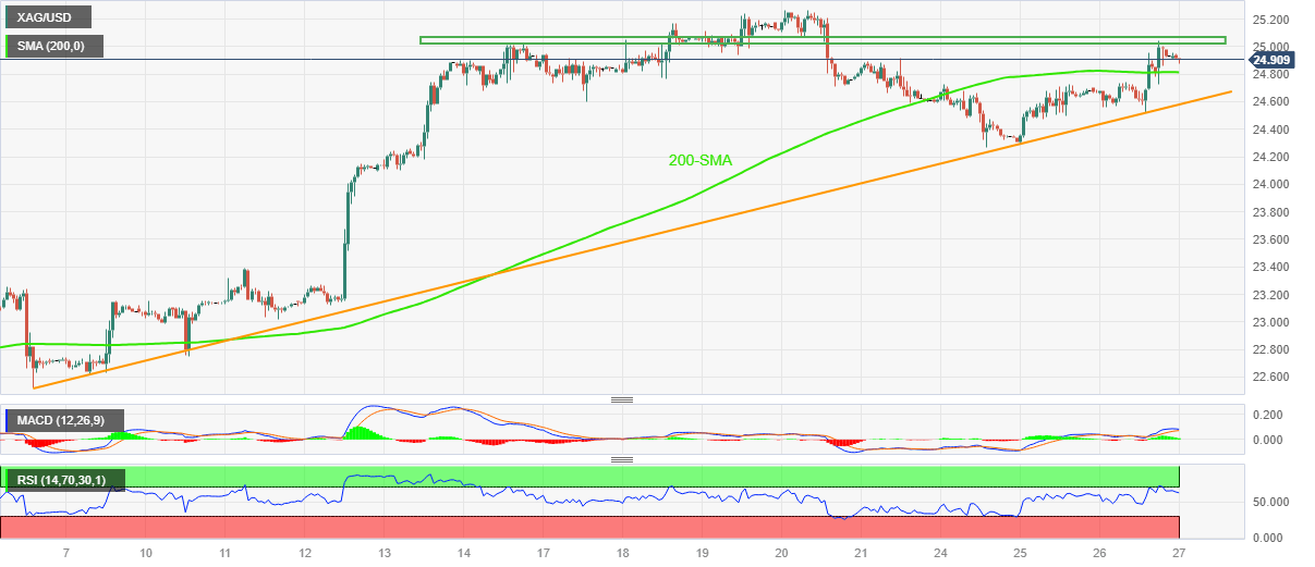 Meanwhile, a clear upside break of the aforementioned horizontal resistance area surrounding $25.00-05 will need validation from the monthly peak close to $25.30 to welcome the XAG/USD bulls.