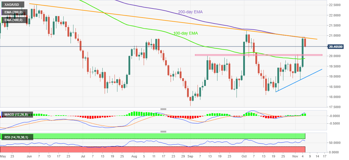 Silver Price Analysis: XAGUSD reverses from $20.90 resistance confluence