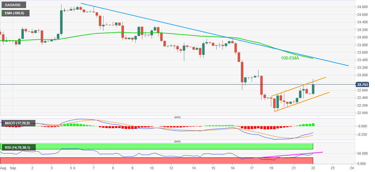 Silver (XAG/USD) extends the previous day’s recovery moves, up over 1.0% daily while taking bids around $22.75 during early Wednesday.