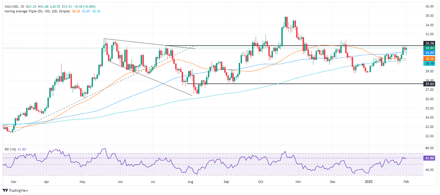 Silver prices advance late in the North American session on Monday, up 0.71%, as trade tensions between the US, Canada, China, and the Eurozone (EU) rise. The XAG/USD trades at $31.49 at the time of writing.