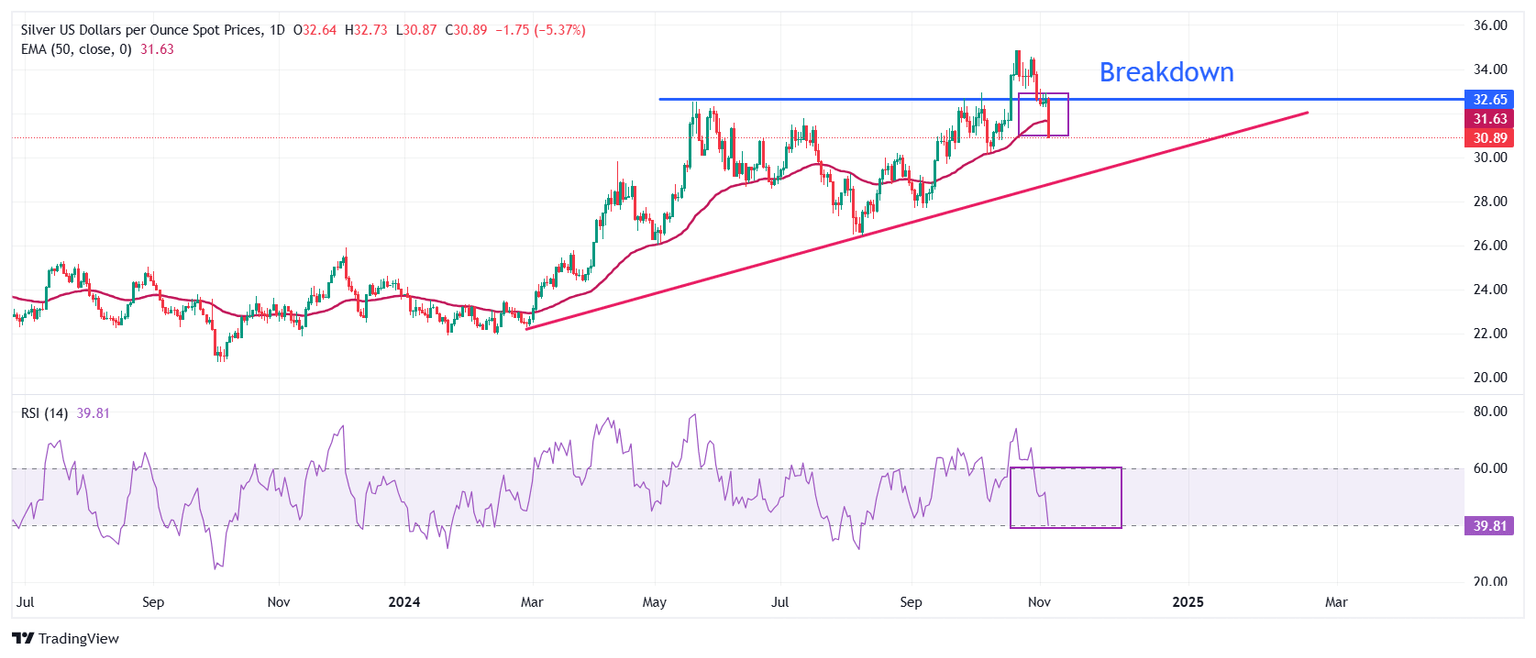 - Silver price plunges below $31.00 as Trump’s victory dampens its safe-haven appeal.