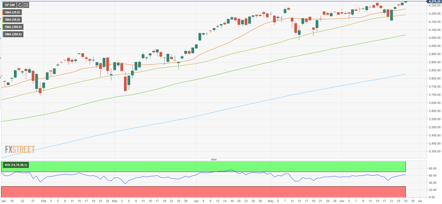 Major equity indexes in the US started the last trading day of the week near Thursday's closing levels as investors assess the latest data releases from the US. As of writing, the S&P 500 was down 0.05% on the day at 4,264, the Dow Jones Industrial Average was up 0.15% at 34,247 and the Nasdaq Composite was gaining 0.1% at 14,380.