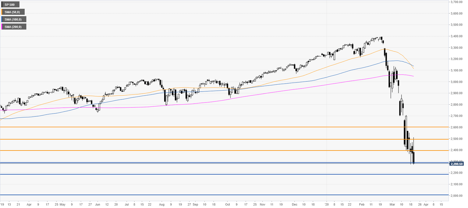 - S&P500 is trading in 37-month lows as coronavirus crisis is taking its toll.
