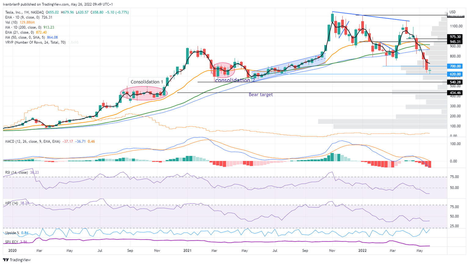 - Tesla is likely to suffer from rising input costs, slowing demand and higher financing costs.