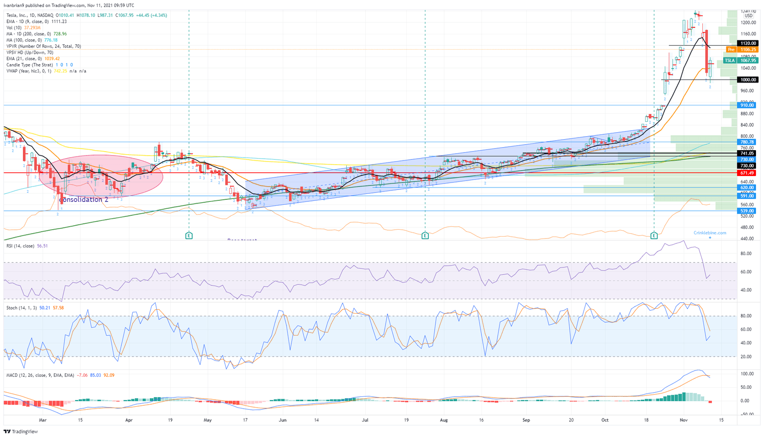 TSLA 1-day chart