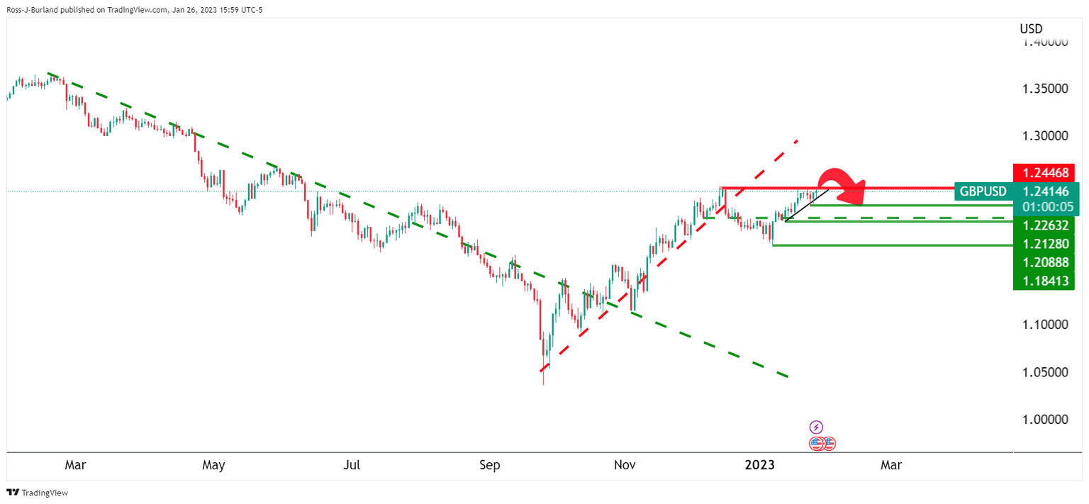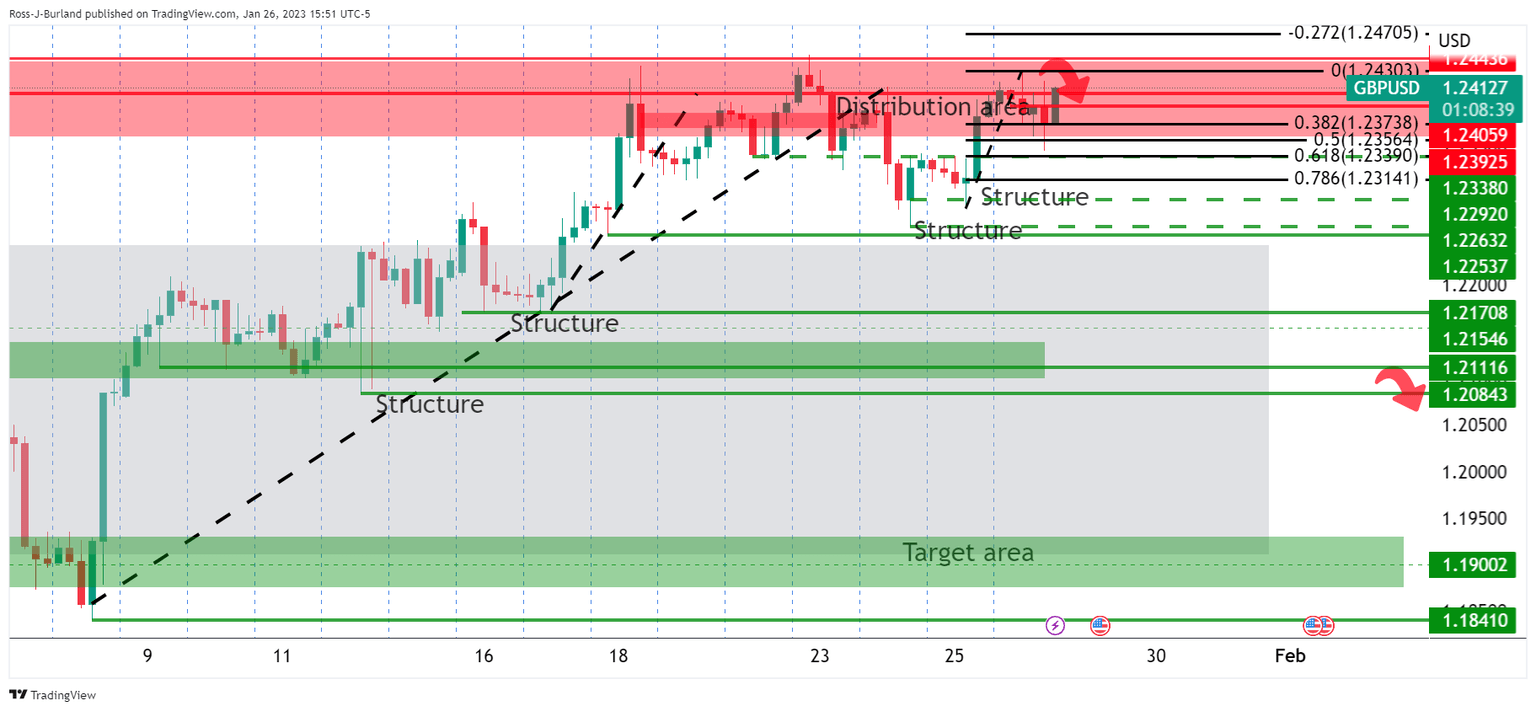 1.2450 is eyed as equal highs that could be swept before bears engage again.