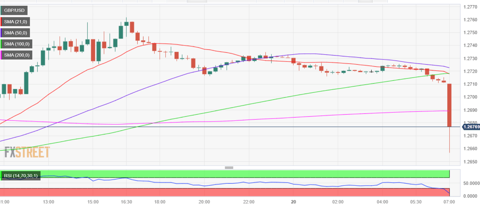 GBP/USD saw a fresh selling-wave on the downbeat UK CPI data, dropping below 1.2700. The pair is falling 0.60% on the day to trade at 1.2650, as of writing.