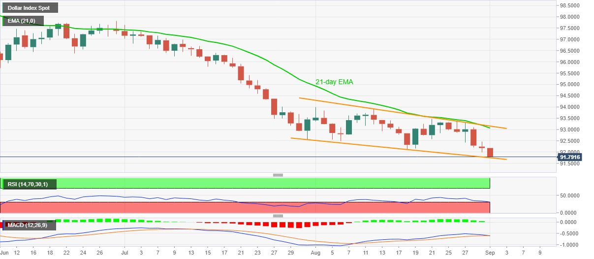 US Dollar Index (DXY) Price Analysis: Slips below 92.00 to refresh 28-month low