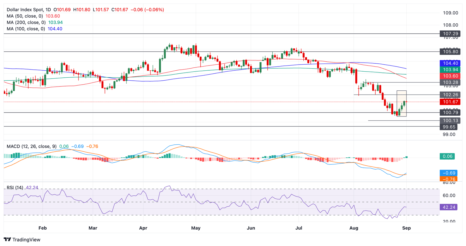 Given “the trend is your friend” this could indicate the evolution of higher highs, with the next target at the 102.26 level (August 14 low).