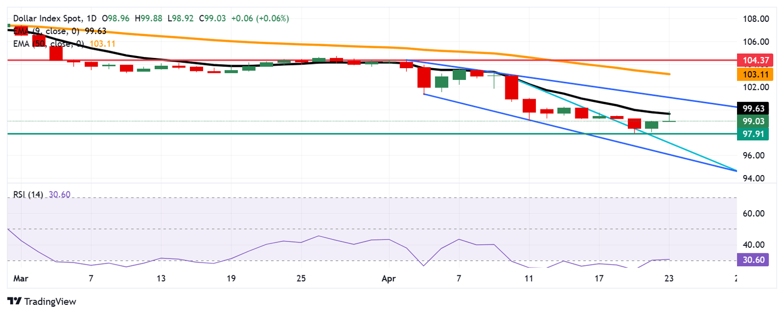 US Dollar Index Price Forecast: Tests 99.00 support after pulling back from nine-day EMA