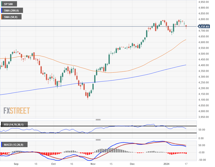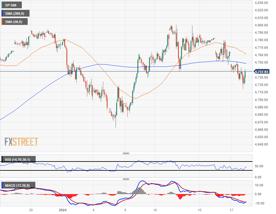 The S&P 500 tumbled to a fresh weekly low of $4,714.37 on Wednesday before recovering back towards the 200-hour Simple Moving Average (SMA) near $4,750.00.