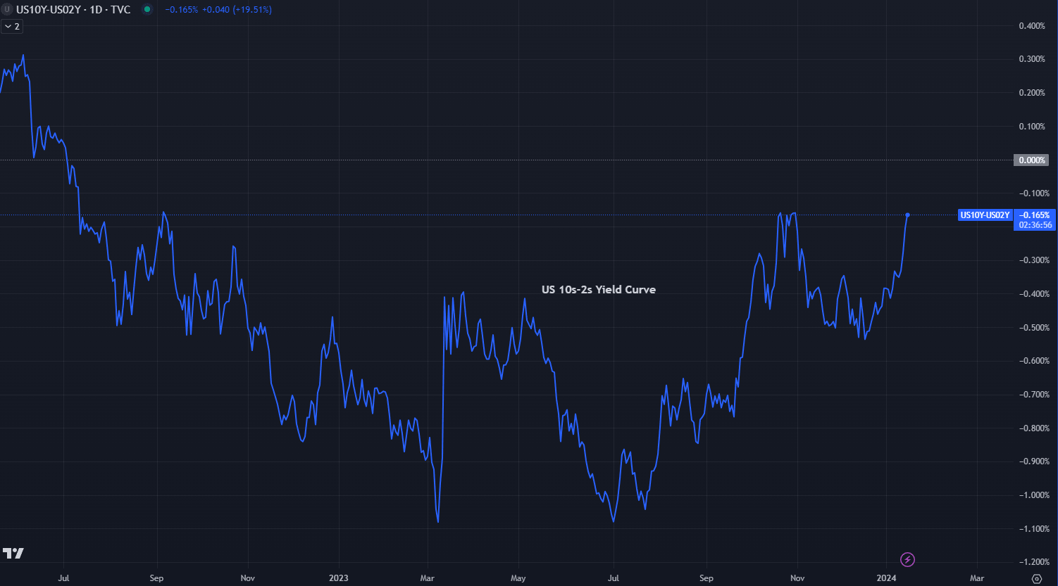 US 10s-2s Yield spread chart