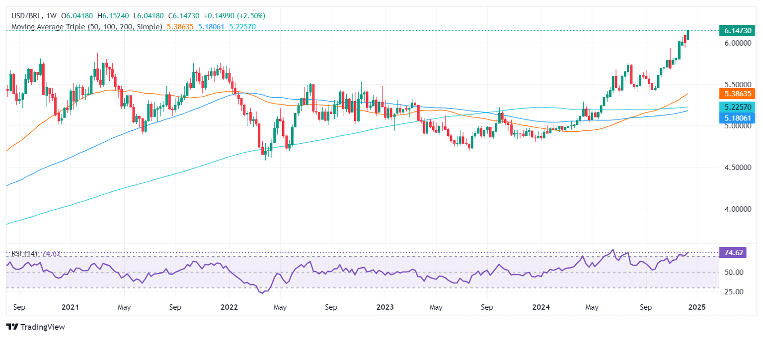 USD/BRL hits all-time high of 6.1496 amid failed BCB intervention
