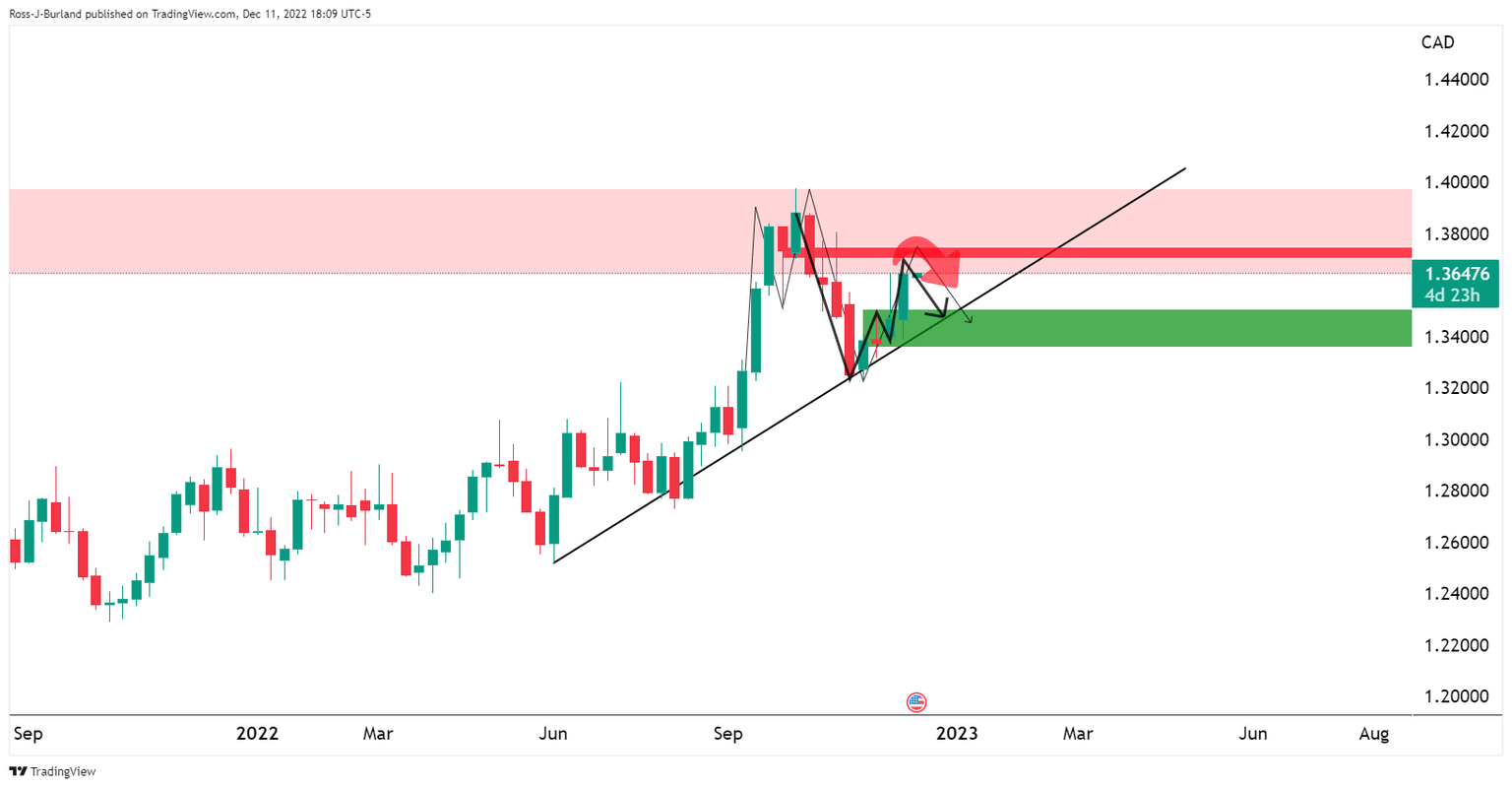 For now, the price remains on the front side of the bullish dynamic support and this leaves prospects of a continuation in the meantime. However, should the price reach into1.3700, bears will be looking for signs of deceleration and distribution.