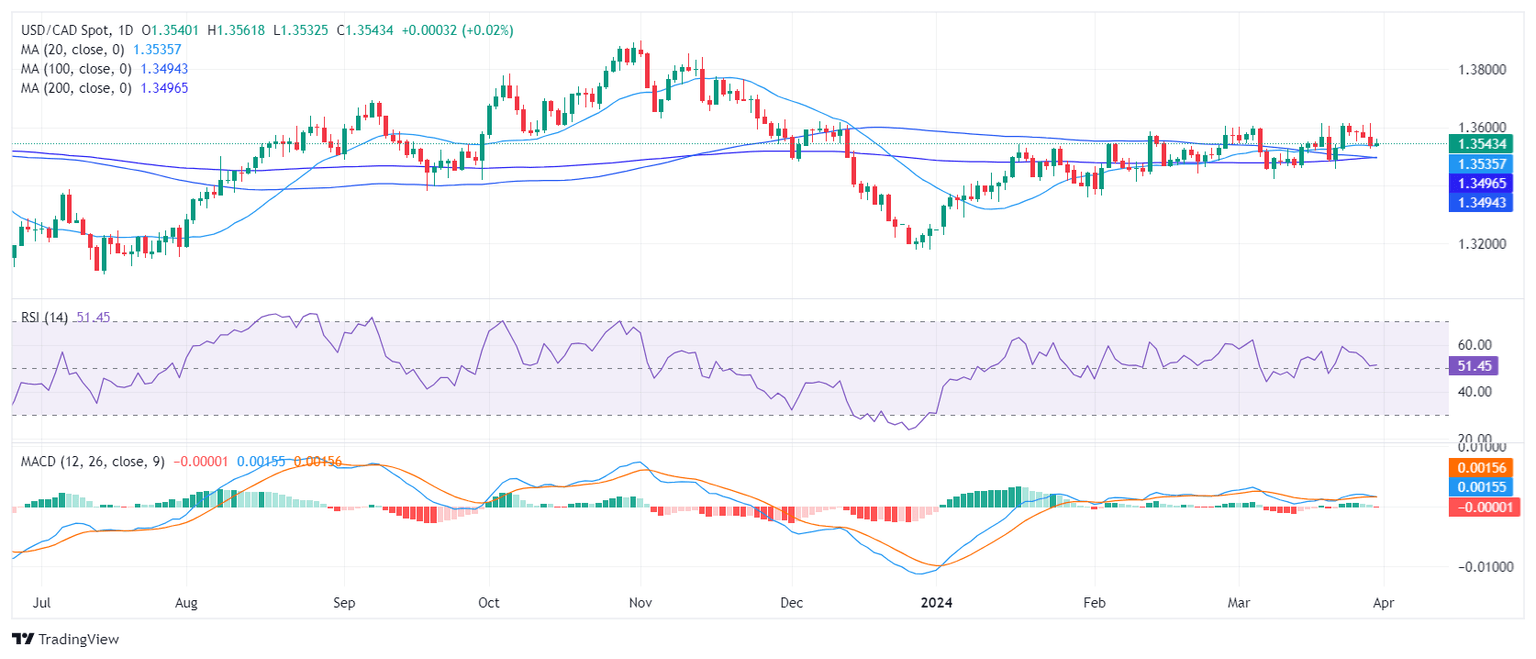 The USD/CAD pair is currently trading around the 1.3543 level on Friday, reflecting minor losses after hitting a high of 1.3560 earlier in the session. While investors digest Personal Consumption Expenditures (PCE) figures, the market will turn its attention toward forthcoming employment-related figures that may add further nuance to the Federal Reserve's (Fed) posture on a probable policy rate delay.