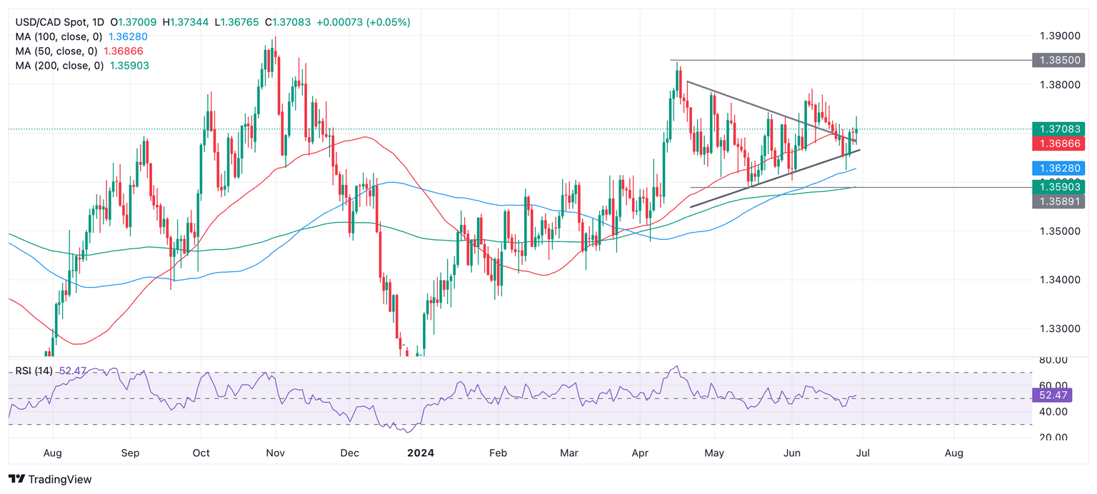 After starting the Asian session in the 1.3730s the pair declined during the day as the Canadian Dollar (CAD) steadily appreciated against its south-of-the-border counterpart. A late-stage rally by the US Dollar (USD), however, brought the pair even as the west coast began to rise.