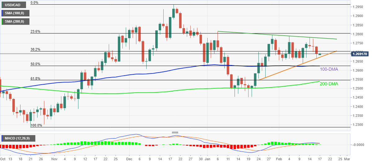 On the contrary, a downside break of the stated immediate support line, near 1.2670, isn’t a green card for the USD/CAD sellers as a convergence of the 100-DMA and 50% Fibonacci retracement (Fibo.) of October-December 2021 upside will be a tough nut to crack for the pair bears around 1.2625.