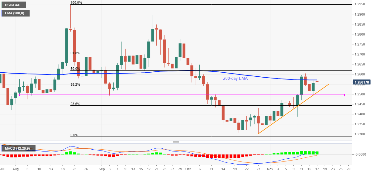 USD/CAD Price Analysis: Bulls again flirt with 200-day EMA around 1.2550