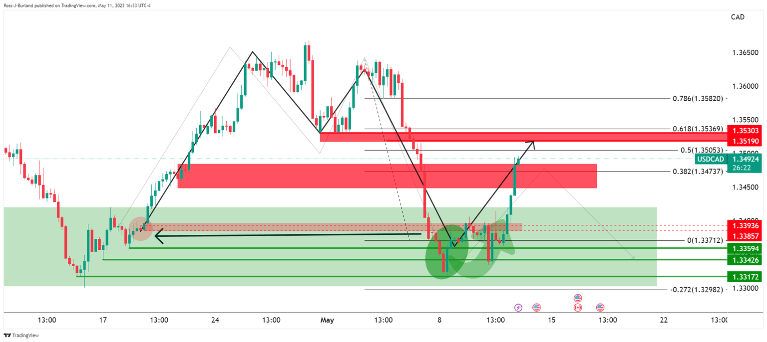 As per the prior analysis, USD/CAD Price Analysis: Bears eye a run to 1.3320 as below key H4 structure, the price has traveled according to the forecast as follows: