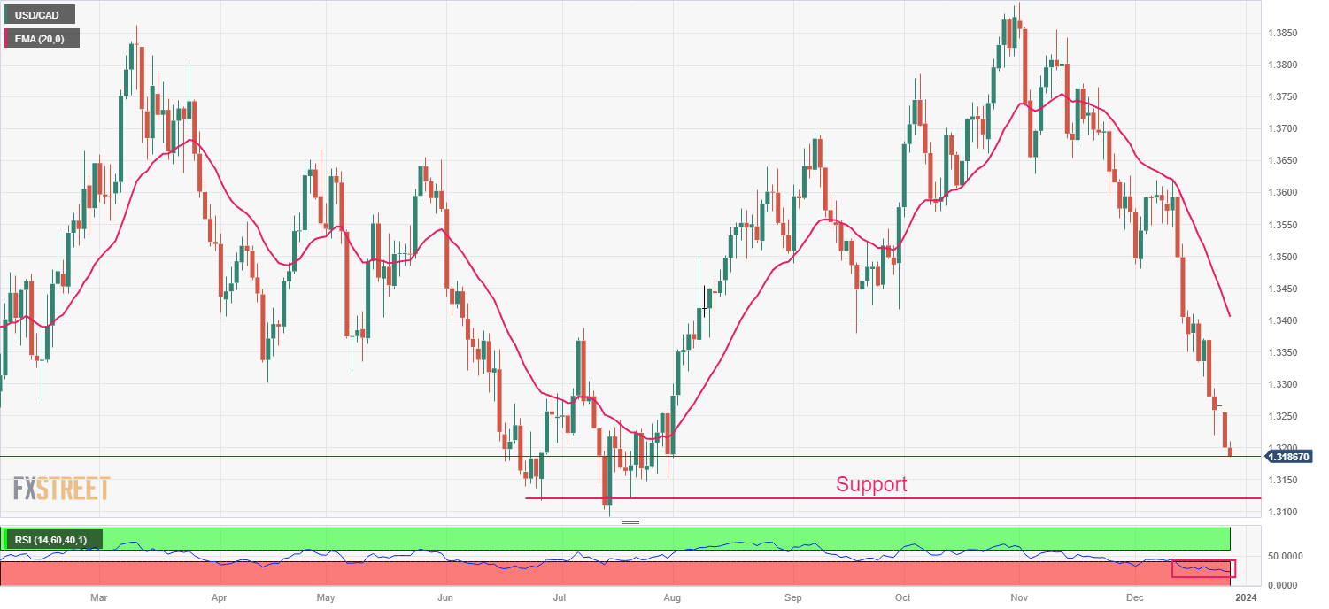 The USD/CAD pair trades back and forth in a narrow range near the round-level support of 1.3200 in the early New York session. The Loonie asset struggles for a direction amid decline in volume due to shortened week.
