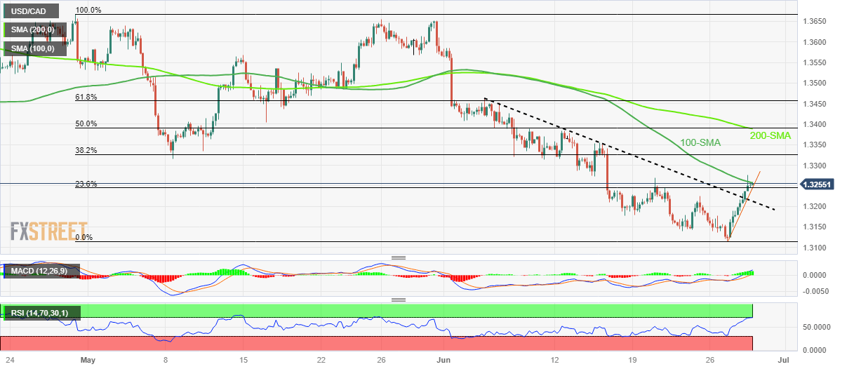 USD/CAD Price Analysis: Loonie pair buyers attack 100-SMA around mid-1.3200s
