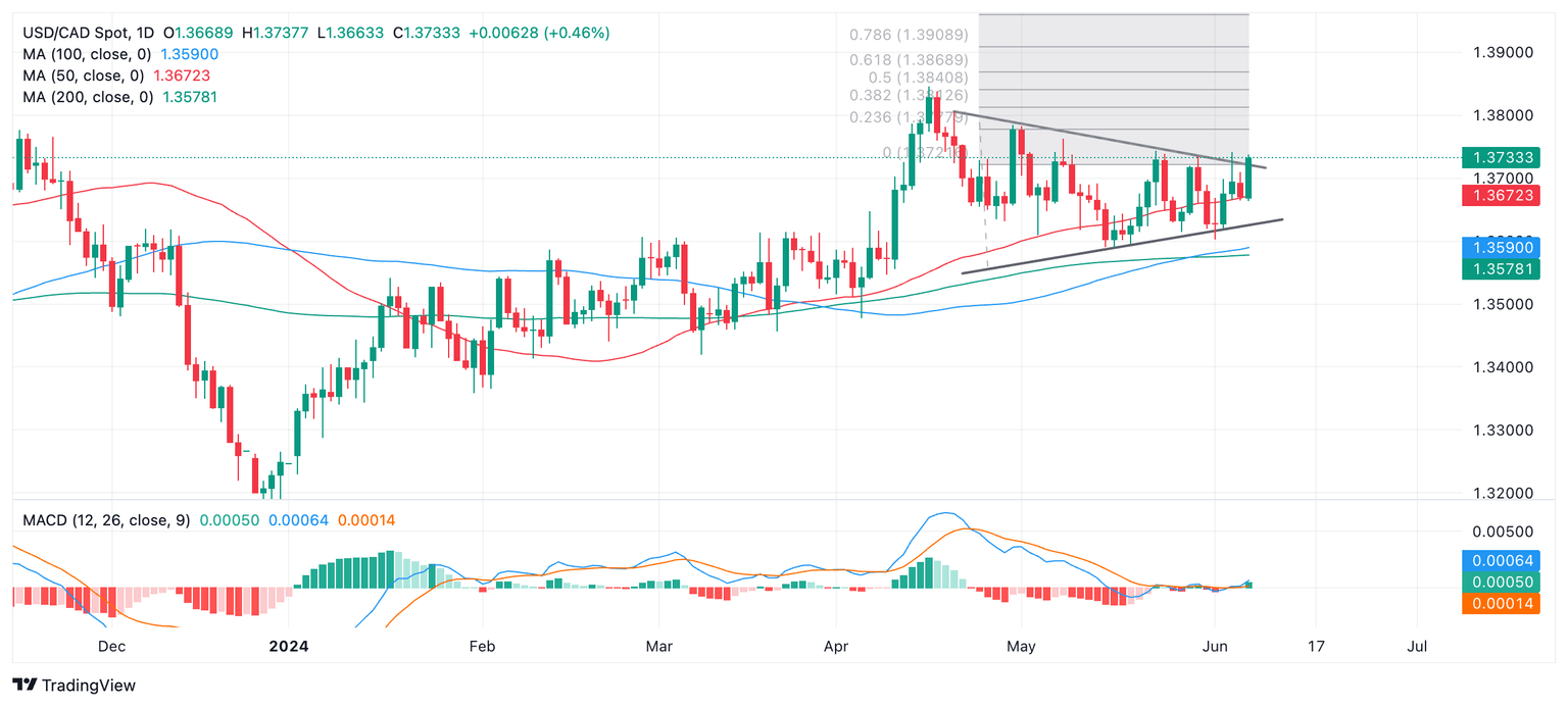 - USD/CAD is attempting to break out of a triangle price pattern and push higher.