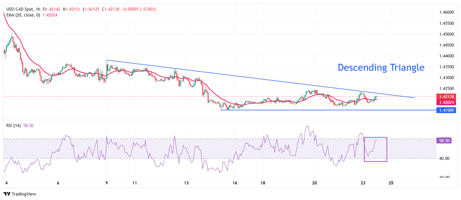 The USD/CAD pair rebounds to near 1.4220 in European trading hours on Monday after sliding to near 1.4180 earlier in the day. The Loonie pair recovers as the US Dollar (USD) recovers almost its entire losses, with the US Dollar Index (DXY) bounces back to near 106.60.