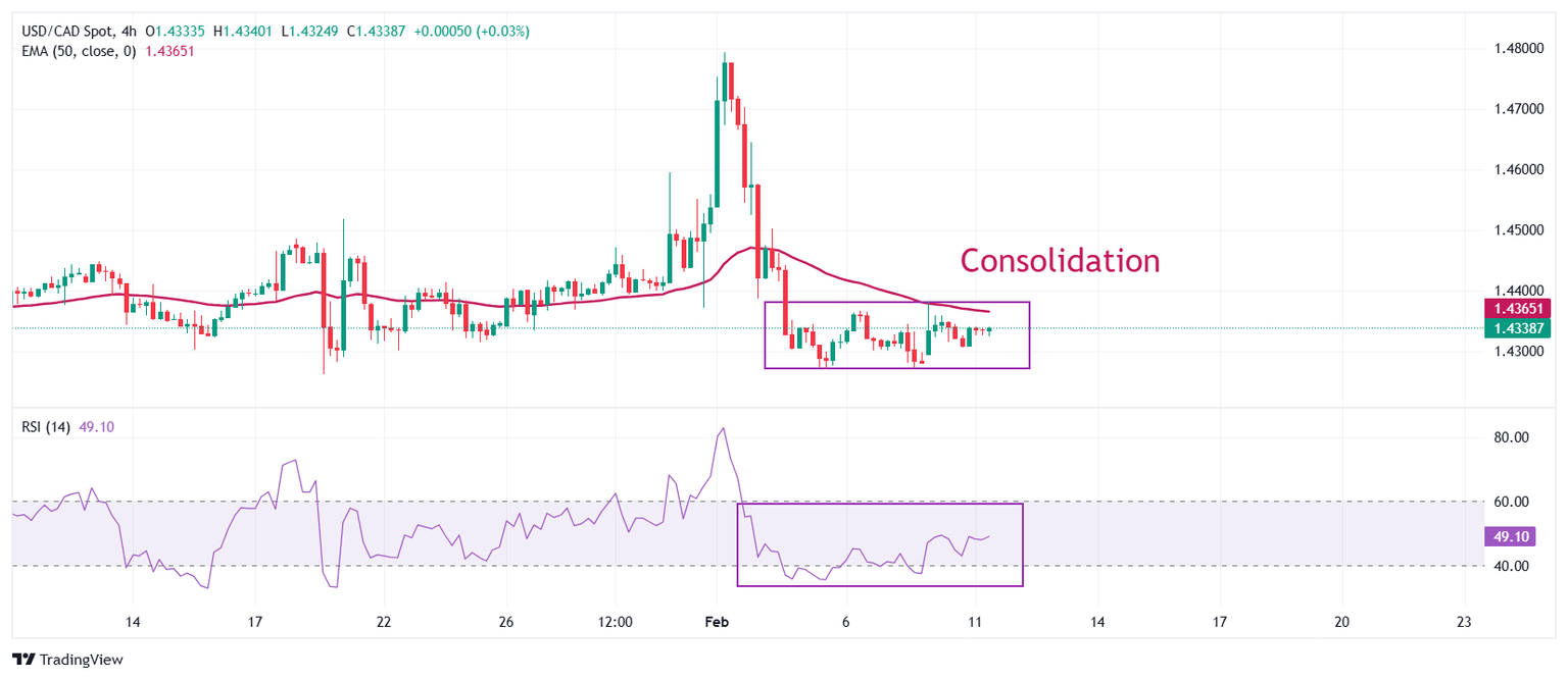 The USD/CAD pair trades inside Monday’s trading range around 1.4330 in Tuesday’s European session. The Loonie pair consolidates as investors await Federal Reserve (Fed) Chair Jerome Powell’s testimony before Congress at 15:00 GMT.