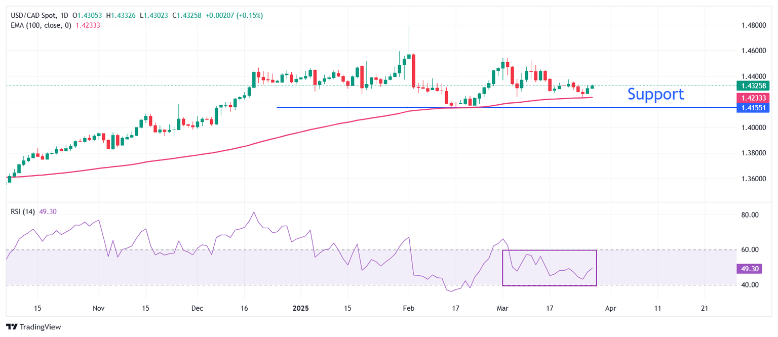 The impact of the US and Canadian data is expected to be limited on the pair as its fate is tied to impending tariffs to be announced by US President Donald Trump on April 2. Trump is poised to unveil his reciprocal tariff plan on Wednesday, which is expected to force market experts to revise their global economic forecasts.