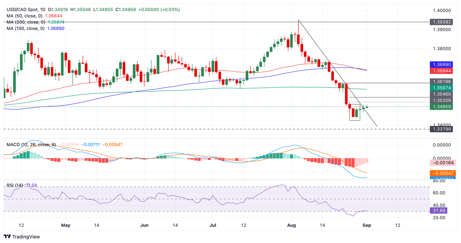 - USD/CAD is showing bullish signs but lacks upside momentum and remains in a downtrend.