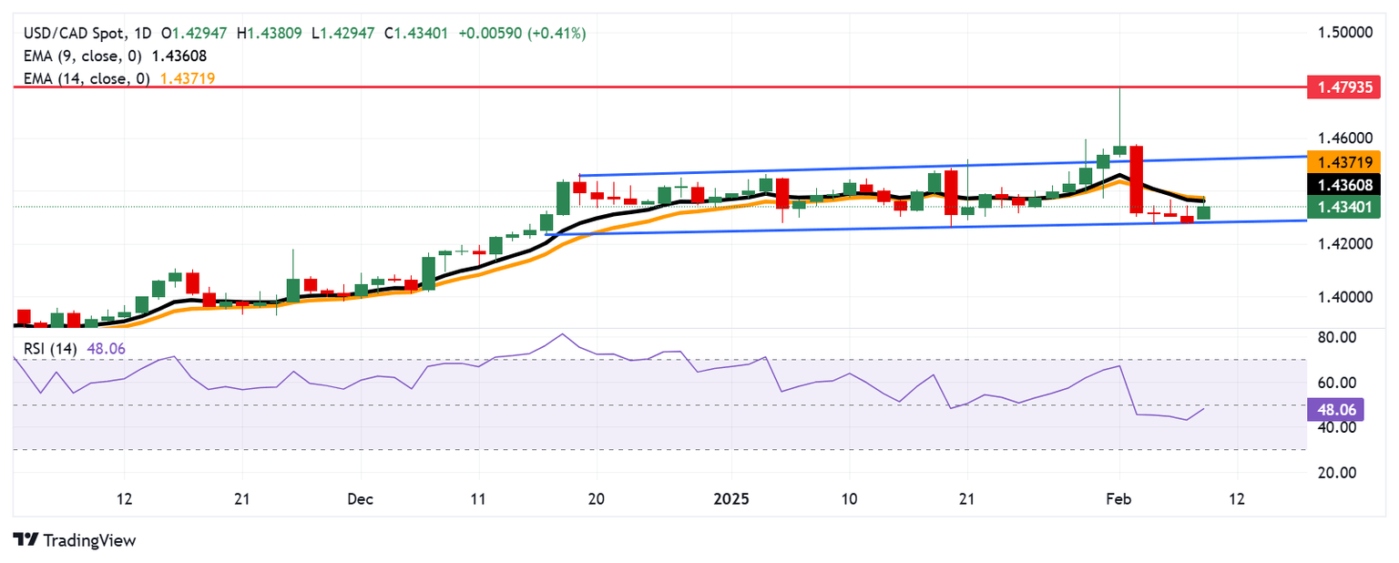 USD/CAD Price Forecast: Tests 1.4350 resistance near nine-day EMA