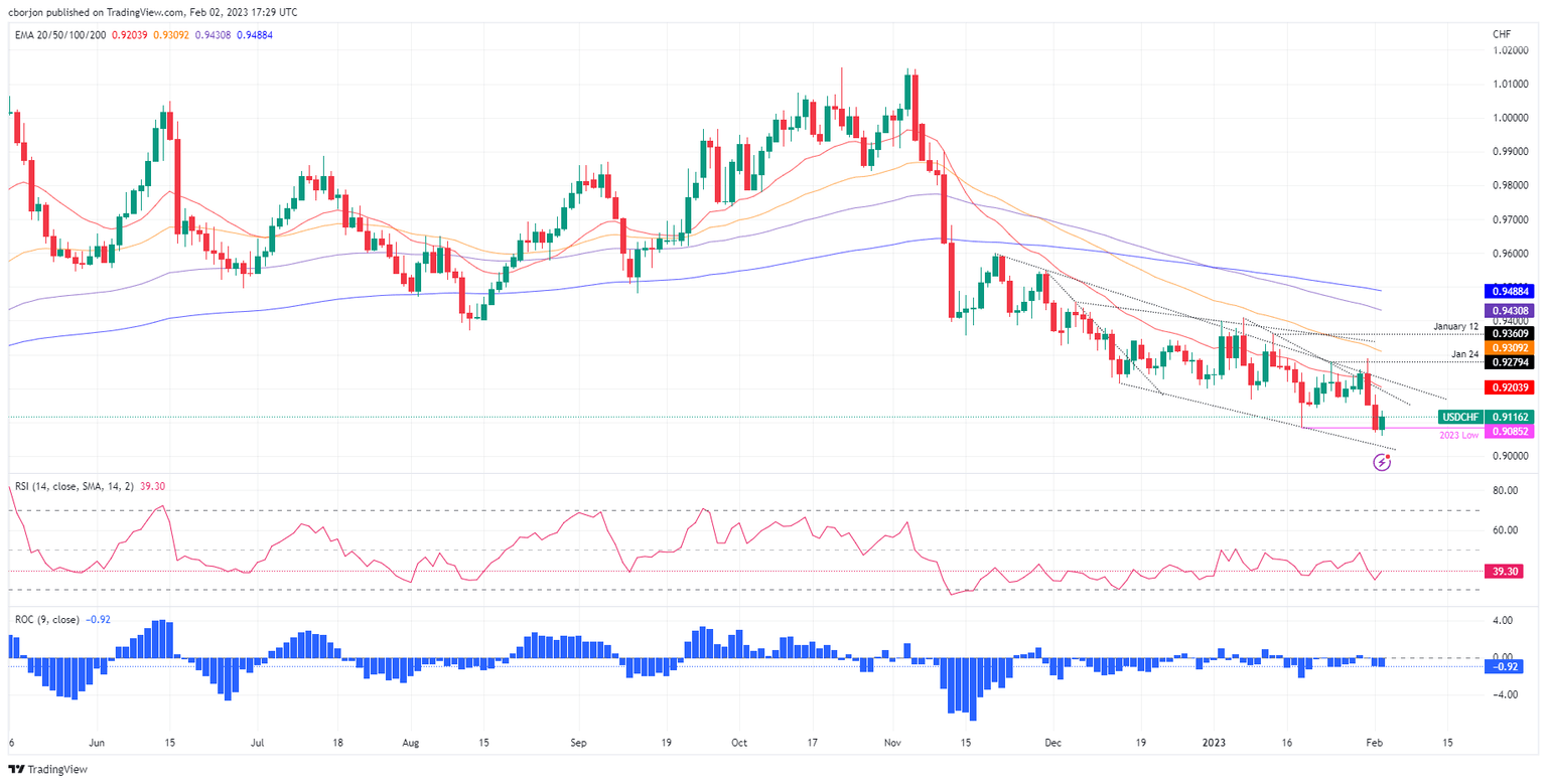 USD/CHF Price Analysis: Bounces at 18-month lows, reclaims the 0.9100 figure